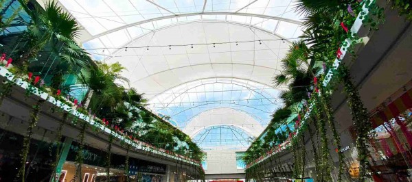 스트리트 지붕은 비누거품 처럼 가볍고 투명한 건축소재가 대형 쇼핑몰 거리를 커버합니다.