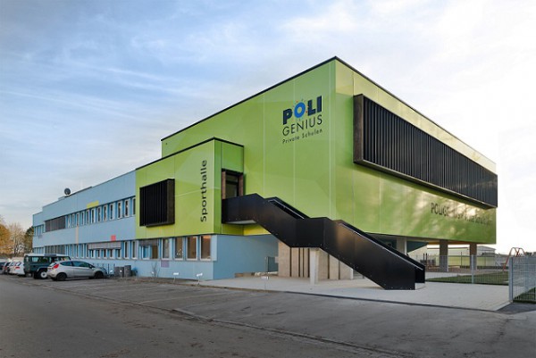 오래된 건물을 리노베이션 하는 효과적 방법으로 파사드 메쉬를 사용합니다. 독일의 UIM에 있는 오래된 체육관 외벽을 따라 컴퓨터로 인쇄한 메쉬를 파사드 처리하여 아름답게 장식하는 효과와 함께 통풍이 원활하고 단열효과를 높입니다.
